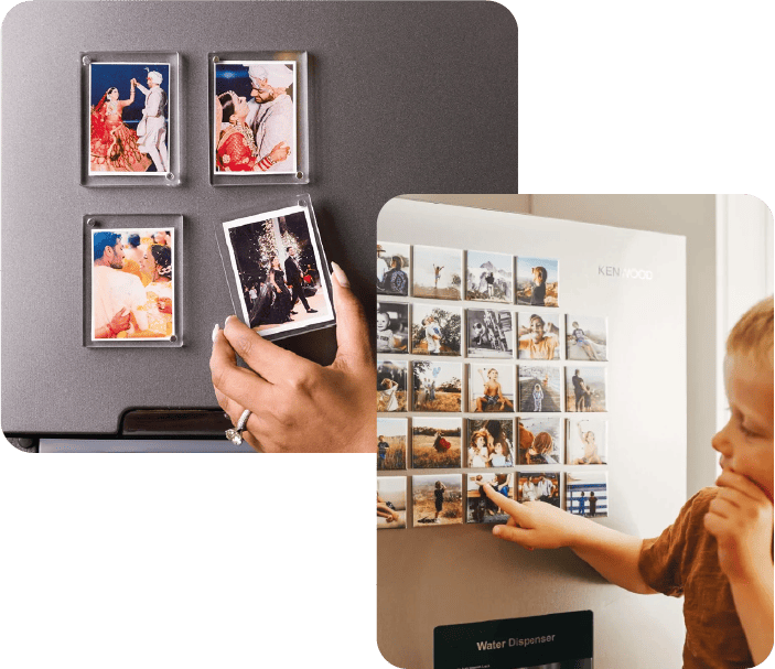 Cualquier superficie magnética se convierte en una pared de momentos inolvidables. Mueve, intercambia y transforma tu exposición a medida que crece tu historia.